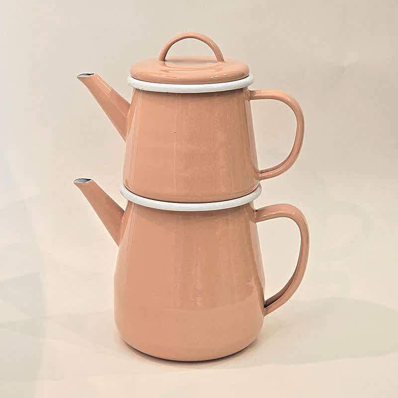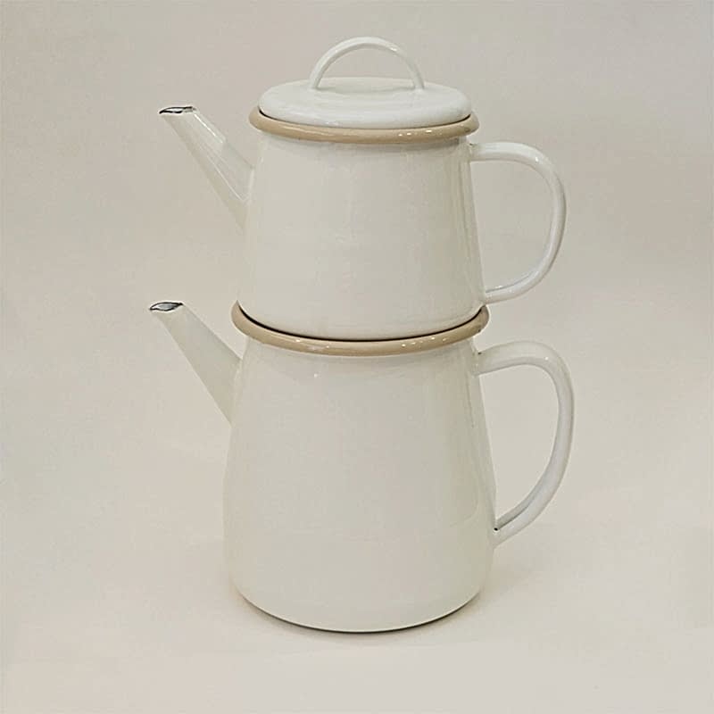 Emaye Silindir Demlik 850 ml Beyaz Laci